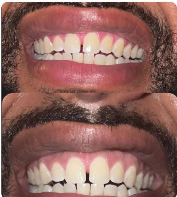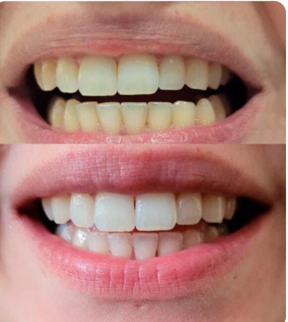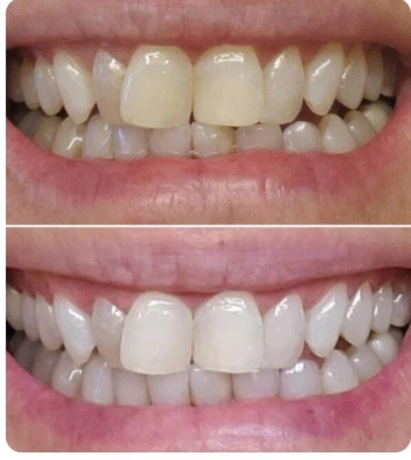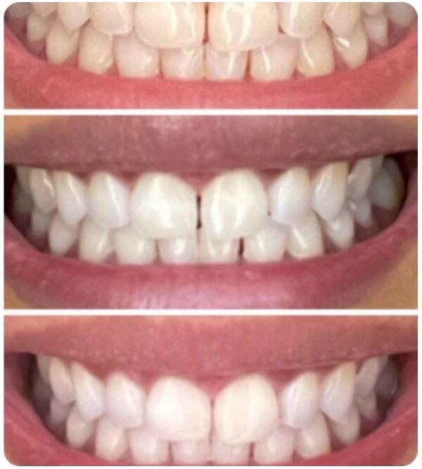 Innovative Farbkorrektur-Technologie für sichtbar hellere Zähne nach der ersten Anwendung.